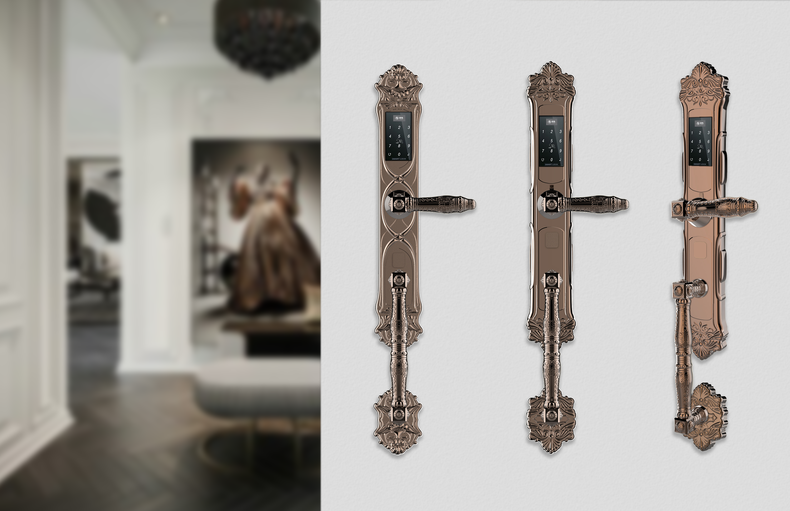 歐式復古智能鎖分類: 產品作者:廈門長臂猿設計2023年10月19日 設計理念/Design concept 運用歐洲中世紀,羅馬以及古希臘的藝術美學體系,提取富有內涵寓意的優美紋樣,改良搭配設計現代智能鎖,完美融合中古藝術氣息于現代智能鎖中。