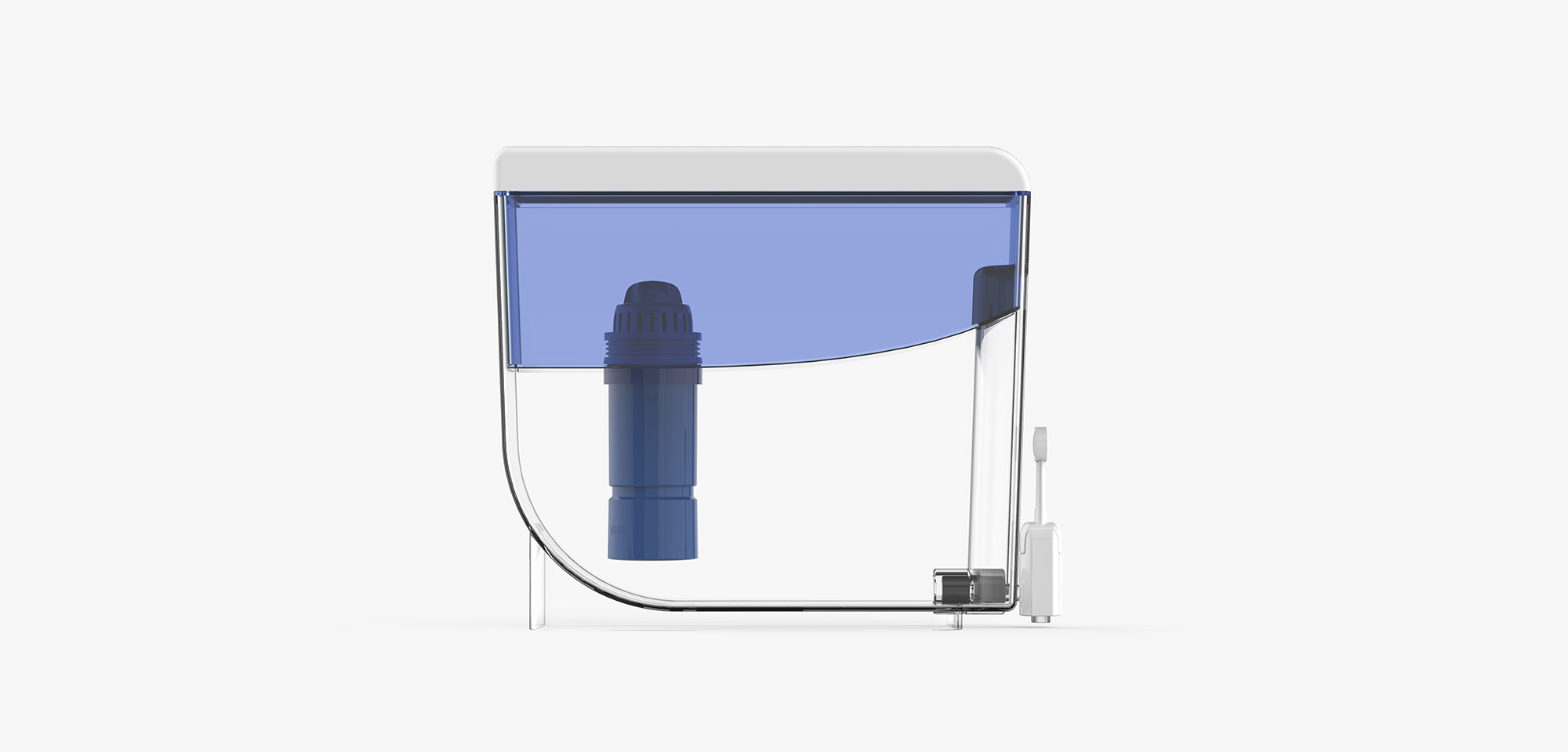 弧面的上水箱與相對的下水箱,多層高分子濾芯,安全健康,暢呂暢飲。