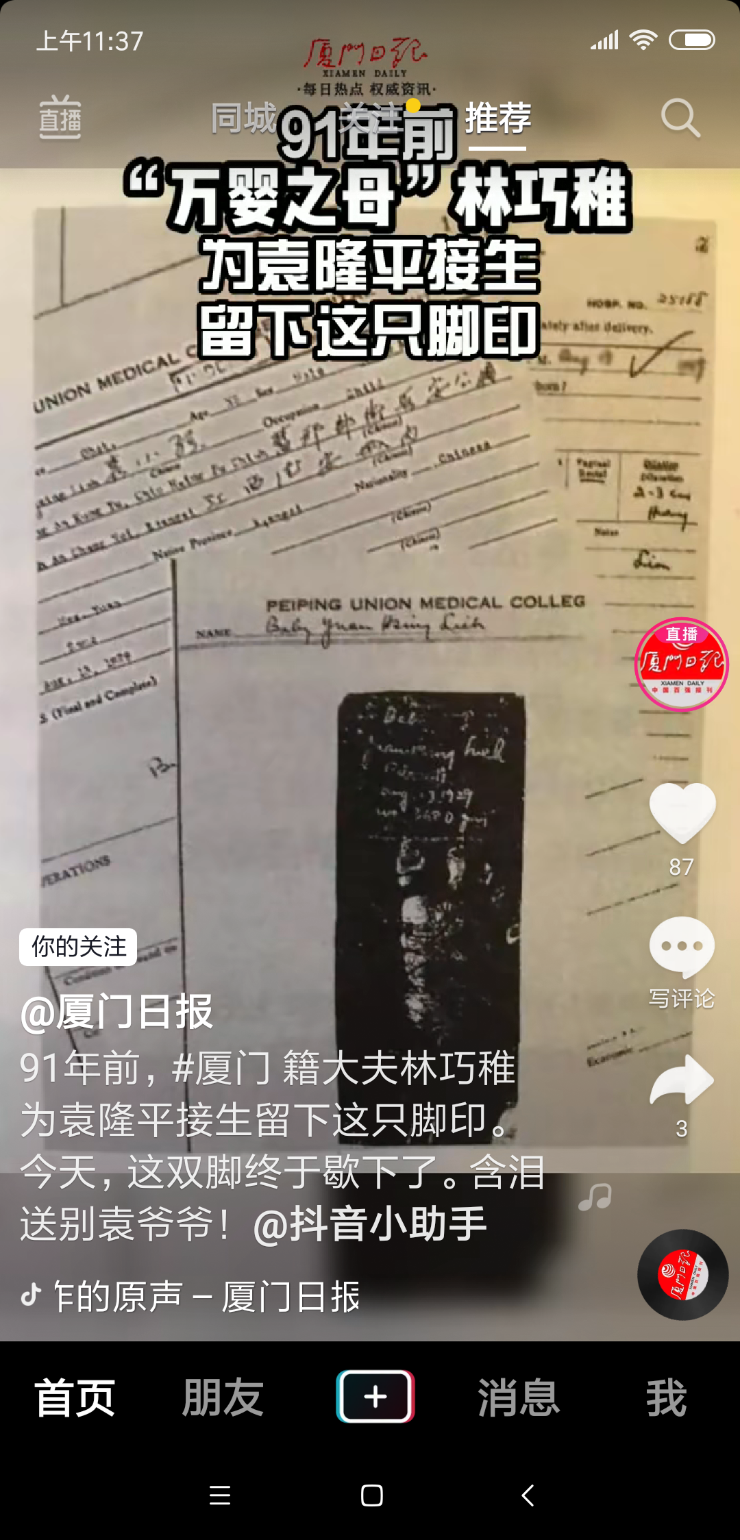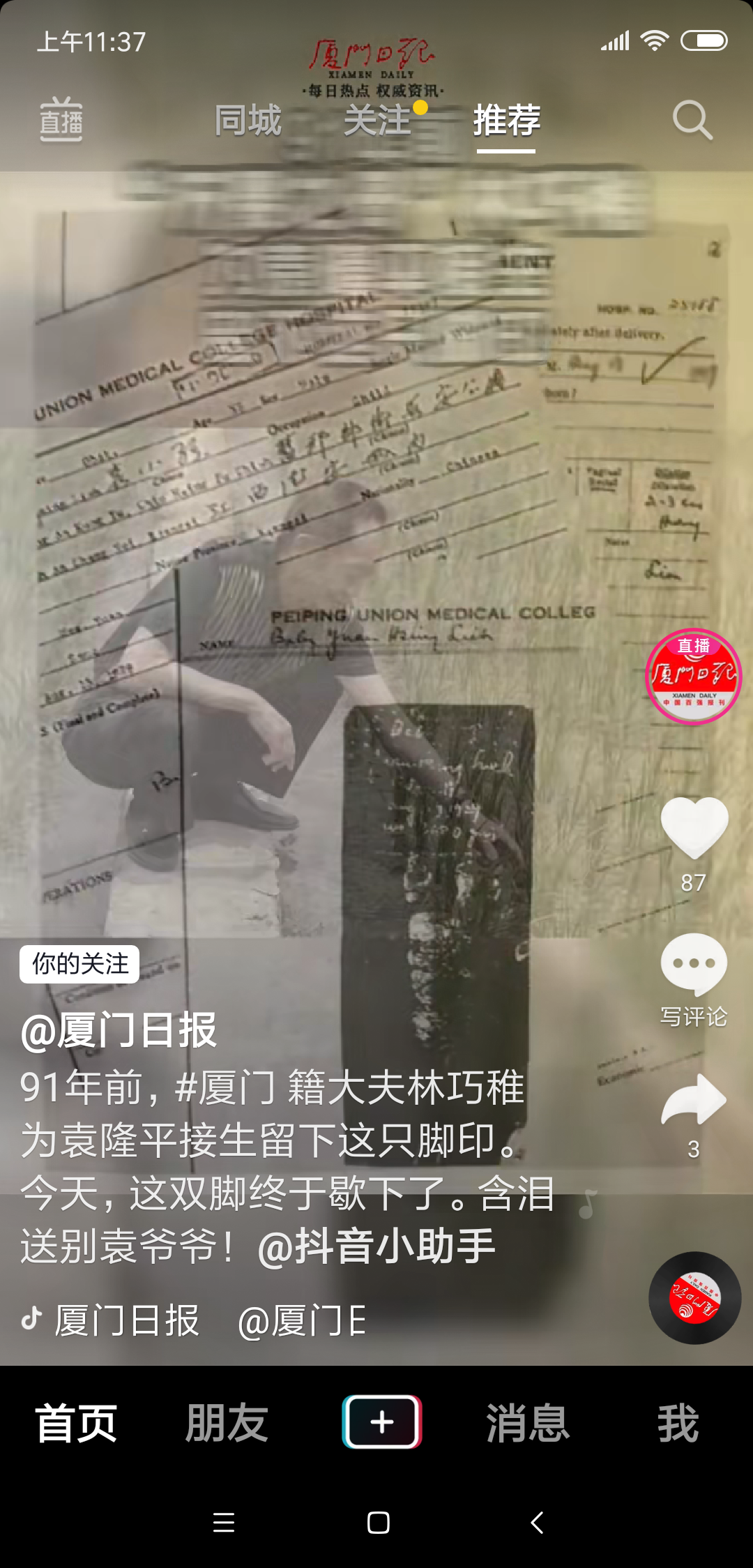 今早送英雄一程!我們從媒體中看到全國人民都沉浸在悲痛之中!我們又從廈門日報發的消息中,知道袁爺爺是91年前,廈門醫生林巧稚為袁隆平接生留下這只腳印,今天,這雙腳終于歇下了,我們雖然是廈門的一個設計公司,也要做最后的道別!袁老,一路走好!(圖片得益于廈門日報,謝謝)