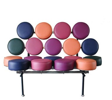 喬治·尼爾森(George Nelson,1907-1986年)被認為是美國最具影響力的人物之一,他是建筑師、家具設計師和產品設計師,曾經擔任Herman Miller家具公司的藝術總監長達20年,可以說和Eames夫婦一起形塑了美國現代家具的樣貌。他最知名的Marshmallow沙發和Ball Clock都像糖果一樣色彩斑斕,是早期波普風格家具的代表作品。